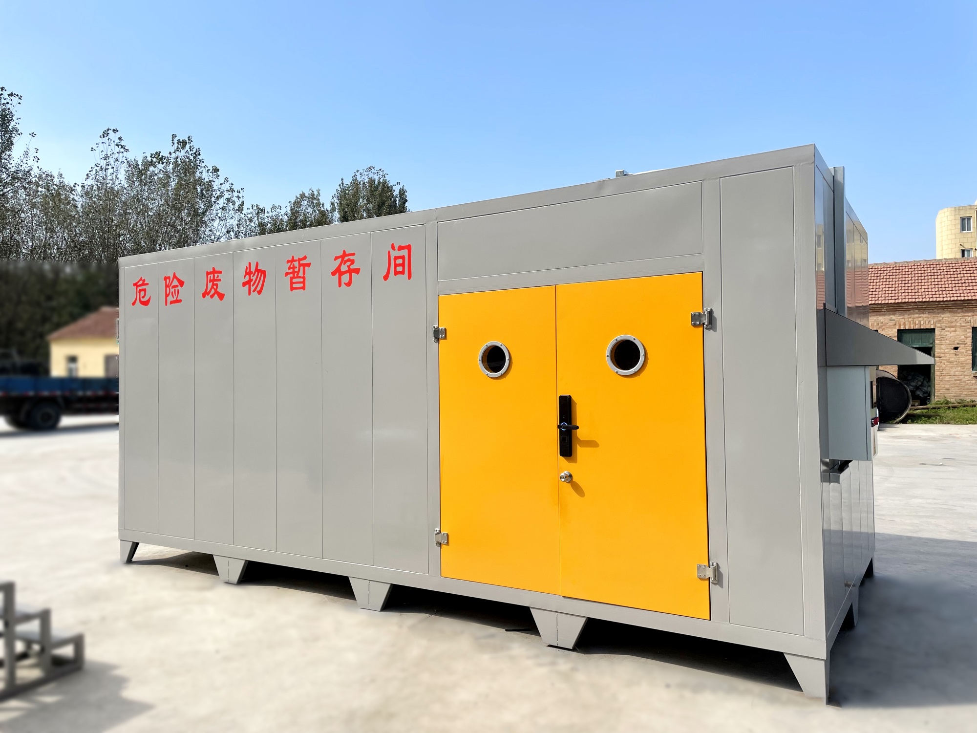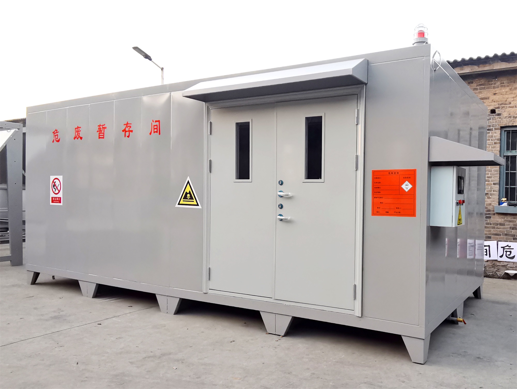?。?)不相容的危險廢物必/須分開存放,并設(shè)有隔離間隔斷。目前,工業(yè)企業(yè)大部分都還是使用企業(yè)內(nèi)部的普通房間(或是車間內(nèi)隔開的區(qū)域)來作為危廢暫存場地,場地基本無做防護(hù)處理,且大多數(shù)企業(yè)的危廢均無密封包裝,成為廠區(qū)的廢氣無組織擴(kuò)散源。且企業(yè)現(xiàn)有的危廢暫存間不具備防火、防腐蝕等功能,如果稍有不慎,那些瓶裝、罐裝的易燃的氣體、液體就會發(fā)生傾倒、泄漏,易釀成泄毒、火災(zāi)、爆炸等事故,后果不堪設(shè)想,因此急需設(shè)計(jì)一種專用的工業(yè)企業(yè)危險廢棄物暫貯存或暫貯存的箱式可移動危廢倉庫。